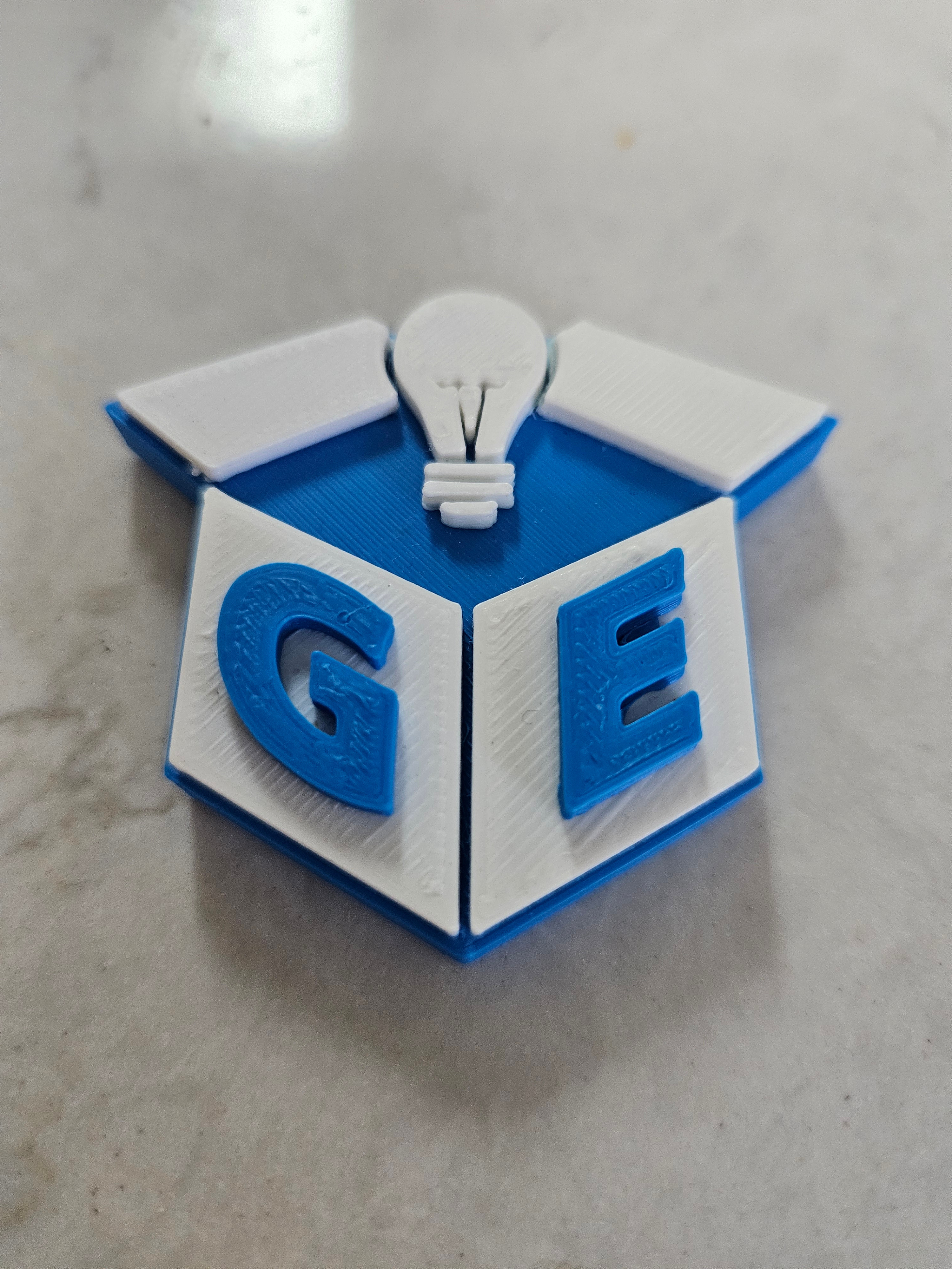 Custom printed 3D model of the company I work for. The purpose of creating this print was to prove that I can print with multiple colours. I started off printing in blue which is the base of the model, then the code alerted me to swap colours so I changed to white, and then I got another alert to swap colours so I changed it back to blue. The quality of the print came out great.